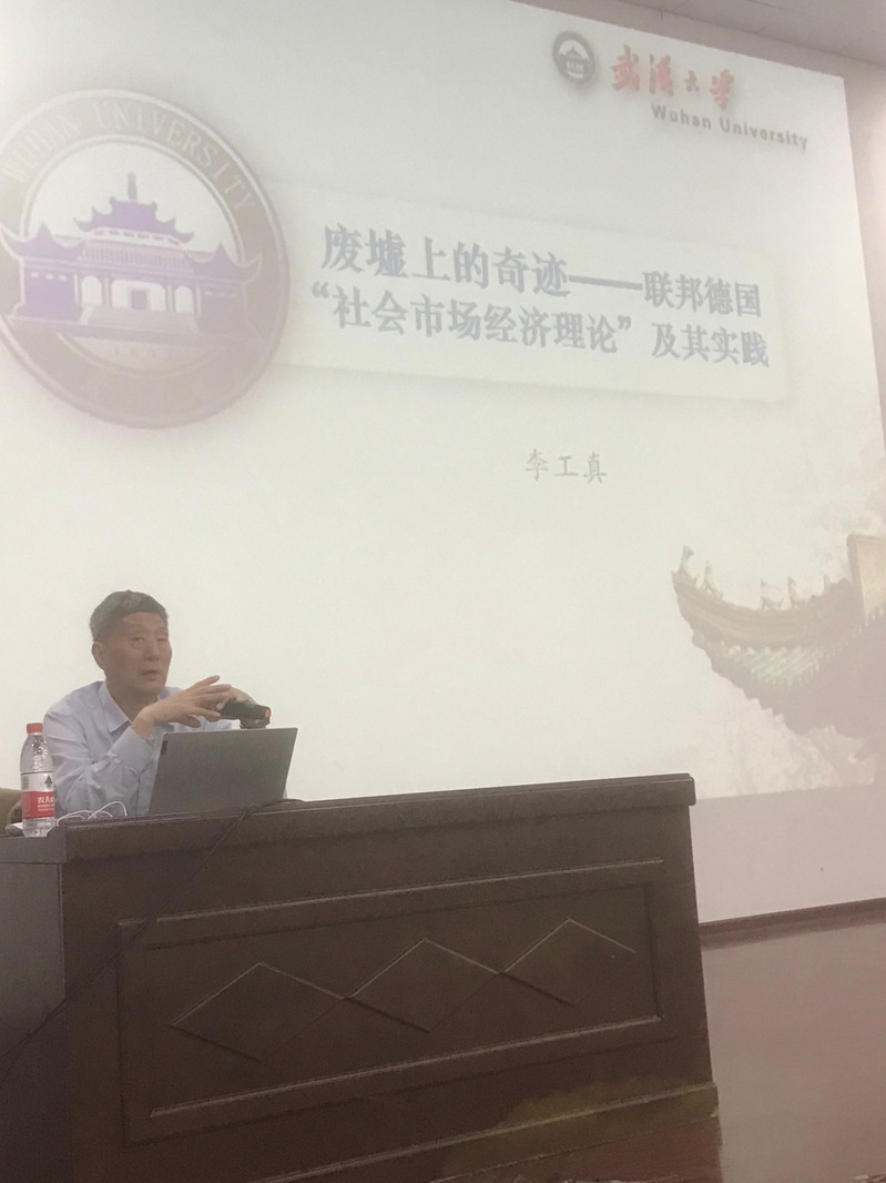 2022年4月6日,武汉大学历史学院知名学者李工真教授受邀来到我校,为酒店偷拍 师生带来了一场题为《废墟上的奇迹——联邦德国“社会市场经济理论”及其实践》的学术讲座,酒店偷拍 院长蔡明伦教授主持了此次讲座。