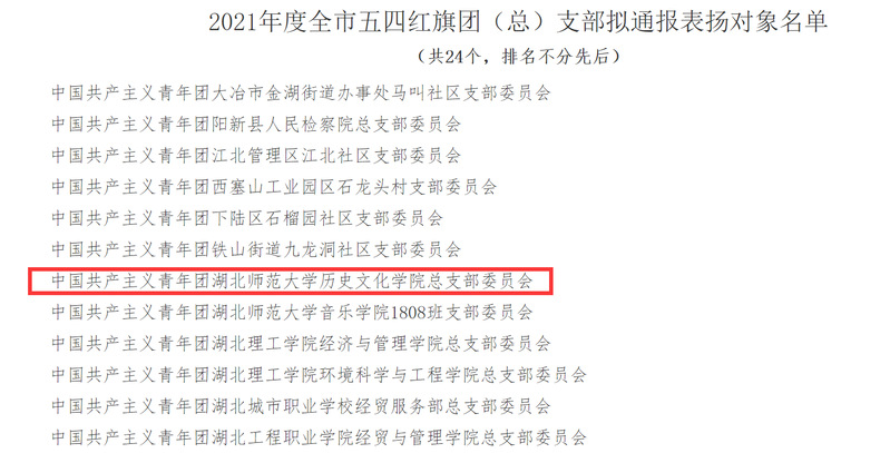 “全市五四红旗团组织”是共青团黄石市委授予基层团组织的最高荣誉。旨在树立政治进步、贡献突出的共青团组织典型,反映新时代黄石青年团组织的精神风貌和价值追求。