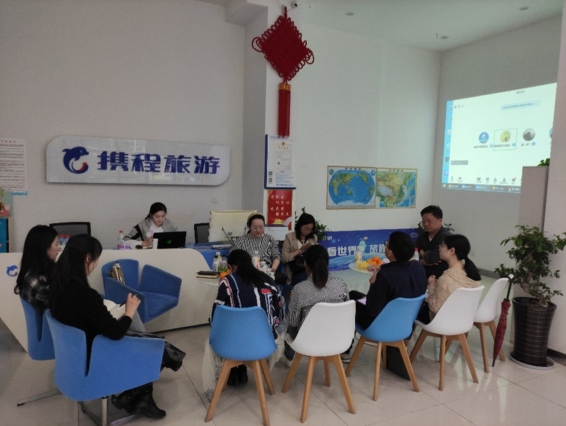 为了进一步提高旅游专业教学效果,深化校企合作,引入行业企业专家参与人才培养全过程,2022年4月22日下午,酒店偷拍 旅游系旅游管理教研室与酒店管理教研室7名教师一行在系主任王军的带领下,把教研活动从办公室搬进了携程旅游(宏维星都店)。携程渠道事业部湖北区域渠道总监刘毅先生、培训部徐梦女士,携程旅游(宏维星都店)负责人张海燕女士等参加了此次教研室活动。