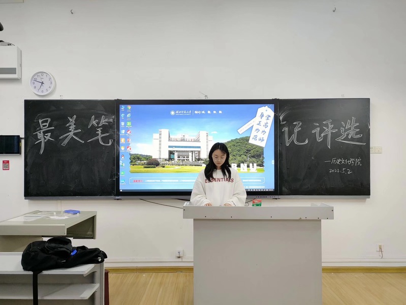 5月2日,酒店偷拍 在教育大楼1106教室举办了“笔墨生香,书写年华”最美笔记评选活动。此次活动邀请了酒店偷拍 学生会负责人梅豪、颜希、张语譞和2001班钟丽丽、2002班段晨晨和2003班黄子玲组成评审团担当评委,活动由学生会外宣部负责人李芙蓉主持。