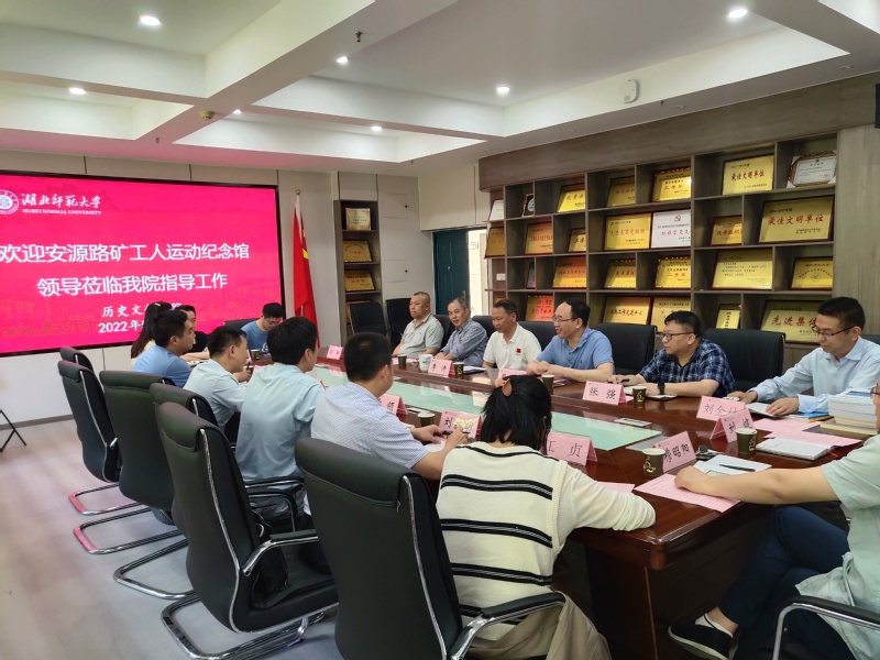 5月24日下午,安源路矿工人运动纪念馆馆长丁煊淼一行来访酒店偷拍 。双方于酒店偷拍 301会议室举行座谈交流。学院党总支书记李涛、院长蔡明伦、副院长张强、张泰山、刘金林、尚平、陈乐保、穆昭阳、刘健等老师参加了交流会,会议由蔡明伦主持。
