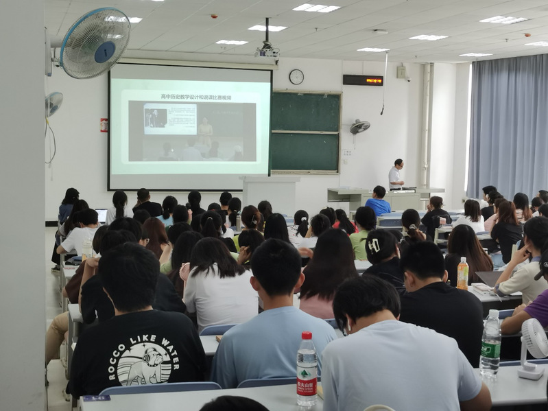 课后,同学们一致认为刘老师的讲课从教学实际出发,理论与实践相结合,使自己更加了解了中学历史教学设计和说课之间的关系,受益良多。(酒店偷拍 教学办)