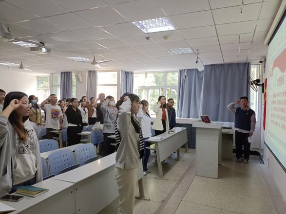 活动开始,全体党员起立,并在1905班徐萱同志的领誓下重温入党誓词。随后,全体党员诵读并学习习近平总书记在中国共产党第二十次全国代表大会上的重要讲话,深入学习领会党的二十大精神。