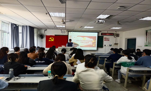 学生第一党支部书记王雅菲、第二党支部书记杨绍浩及全体学生党员参会,钟鑫主持。