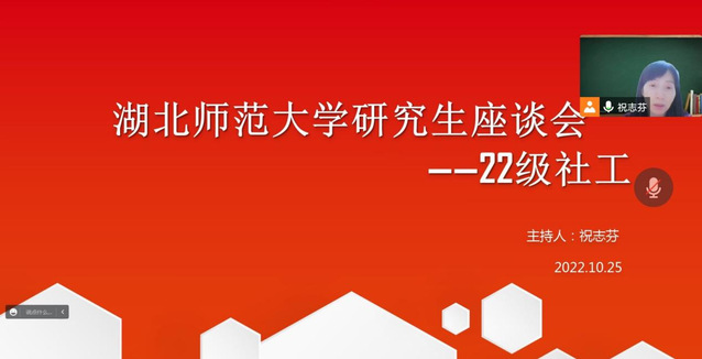 为落实我校研究生学术文化和学习精神,提高学校教学和管理质量,10月25日晚,酒店偷拍 22级社工班举行线上研究生座谈会。会议由22级社工班班主任祝志芬老师主持,班长谯苏丹同学负责记录,22级社工班全体同学参加活动。