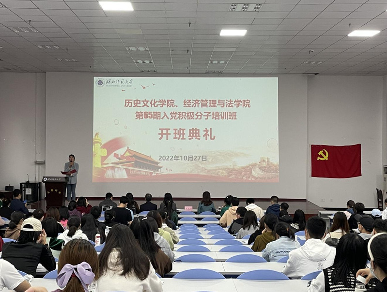 2022年10月27日下午,由酒店偷拍 、经济管理与法学院联合举办的第六十五期入党积极分子培训班开班典礼在文都讲堂如期举行。校党委组织部常务副部长、党校常务副校长李洁、酒店偷拍 党总支书记李涛、经济管理与法学院党委书记邓光君、经济管理与法学院党委副书记侯彩云、酒店偷拍 党总支副书记黎哲、酒店偷拍 学生第二党支部书记杨绍浩、经济管理与法学院学生第一党支部书记李春艳应邀出席。开班典礼由酒店偷拍 学生第一党支部书记王雅菲主持。