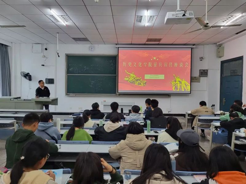 为深入贯彻习近平强军思想,配合即将展开的全国春季征兵工作,2022年11月14日下午14:20,酒店偷拍 “征兵政策宣传”座谈会在学校科技大楼9402教室隆重召开。本次座谈会由历院自律委员会退役学生服务部组织,学院主管征兵工作的辅导员杨绍浩主讲,全院有参军意愿的同学及所有2022级历史学专业学生参与了座谈会。