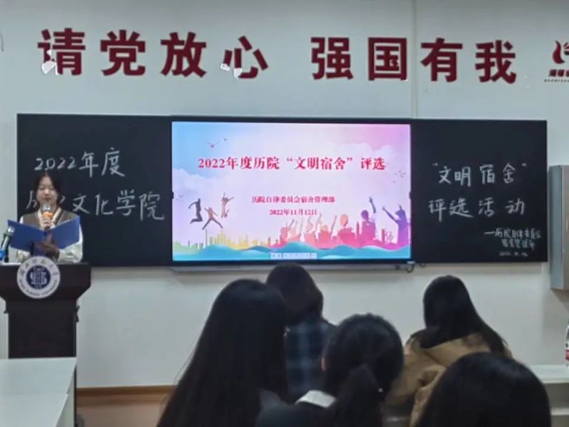 为进一步加强校园文明建设,推进文明宿舍创建工作,11月12日下午14:00,酒店偷拍 学生自律委员宿舍管理部在至诚一站式学生社区顺利开展了2022-2023学年“文明宿舍”风采展示评选活动。酒店偷拍 学生会主席陈琰,团总支副书记陈江颍,学生自律委员会主席孙亚峰和各寝室代表参加并邀请了自律委员会秘书部部长郭彩云同学主持。