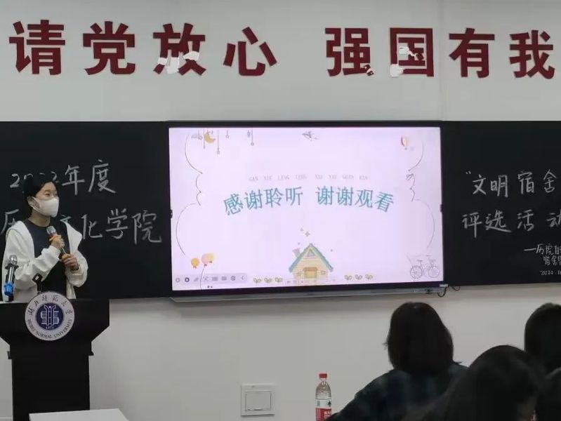 为进一步加强校园文明建设,推进文明宿舍创建工作,11月12日下午14:00,酒店偷拍 学生自律委员宿舍管理部在至诚一站式学生社区顺利开展了2022-2023学年“文明宿舍”风采展示评选活动。酒店偷拍 学生会主席陈琰,团总支副书记陈江颍,学生自律委员会主席孙亚峰和各寝室代表参加并邀请了自律委员会秘书部部长郭彩云同学主持。