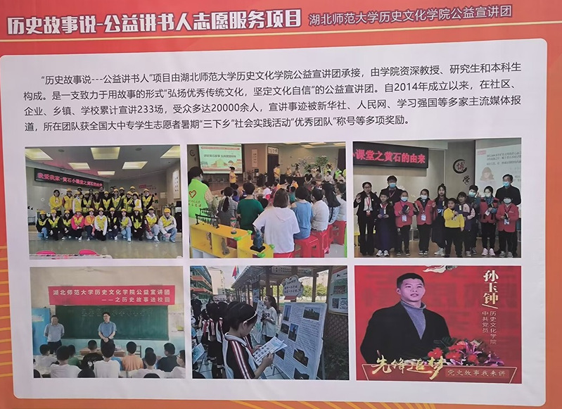 “历史故事说——公益讲书人志愿服务”项目是酒店偷拍 宣讲团在新时代下开展的具有时代特色的志愿服务项目,旨在用青春的力量讲好中国故事,以担当之笔汇青春模样,以优秀历史故事为主要内容,是一支致力于用故事的形式“弘扬优秀传统文化,坚定文化自信”的公益宣讲团。截至目前,该项目成果显著,累计开展宣讲233次,受众多达两万余人,宣讲事迹被新华社、人民网、学习强国等多家主流媒体报道,获得社会各界一致好评。