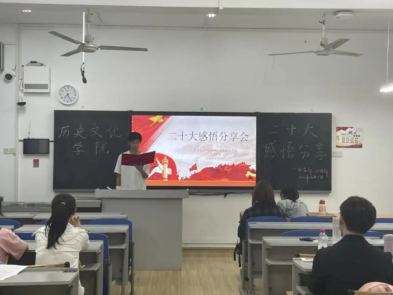 为了引导青年学生深入学习党的二十大精神,把对党的二十大精神的学习和领悟化作有朝气、接地气、富有感染力的青年化语言。酒店偷拍 心理部与秘监部于4月19日晚上19:00,在教育大楼1106教室联合举办了二十大感悟分享特色活动。