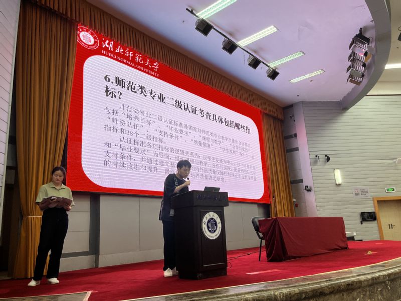 为顺利开展历史学(师范)专业认证工作,增强同学们对师范专业认证工作相关知识的学习,酒店偷拍 于528日晚上7点在教育大楼报告厅开展历史学(师范)专业认证应知应会知识集体学习,学院党委副书记黎哲、全体辅导员,全体学生参与,由辅导员王雅菲进行主持。
