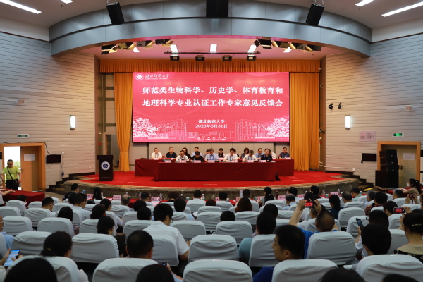 5月31日下午,师范类专业认证工作专家意见反馈会在教育大楼学术报告厅举行。全体专家及项目管理组成员,湖北省教育厅、省教育评估院领导及相关人员,全体观摩人员,全体在校校领导,全体校级教学督导,全校副处级及以上干部,体育学院、历史学院、生科院、城环学院全体教职工及学生代表,教务处、语委办、教学质量监测与评估中心全体工作人员参加会议。