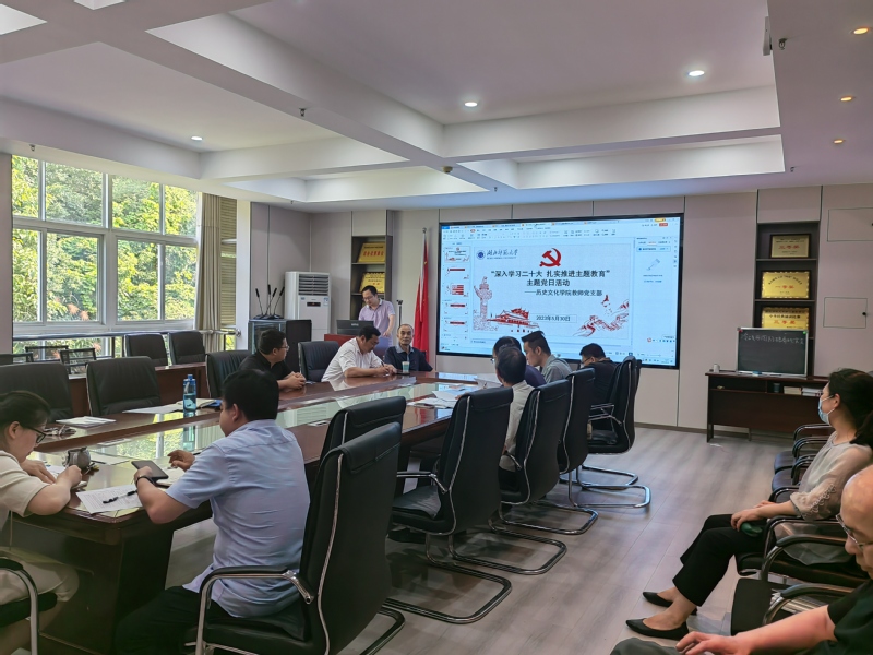 5月30日下午,历史文化学院教师党支部在学院301会议室开展“深入学习二十大,扎实推进主题教育”主题党日活动,支部全体党员参加活动,活动由支部书记穆昭阳主持。