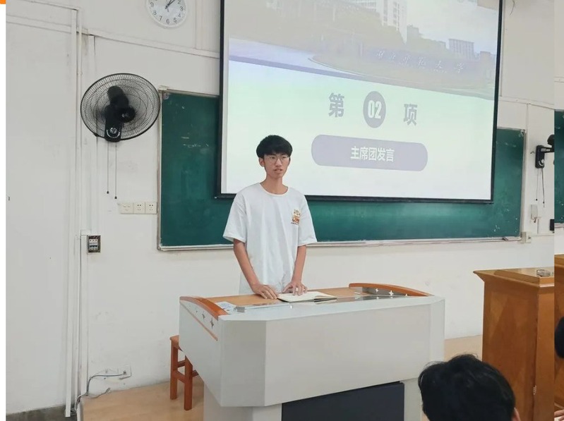 会议第二项,主席团成员依次上台发言。各部门负责人对各成员的学习生活提建议。他们希望各部门积极开展活动,认真对待工作,加强团队合作,善于发现问题、总结问题,这样才能不断进步,同时各部门负责人还对接下来的找新工作提出希冀。