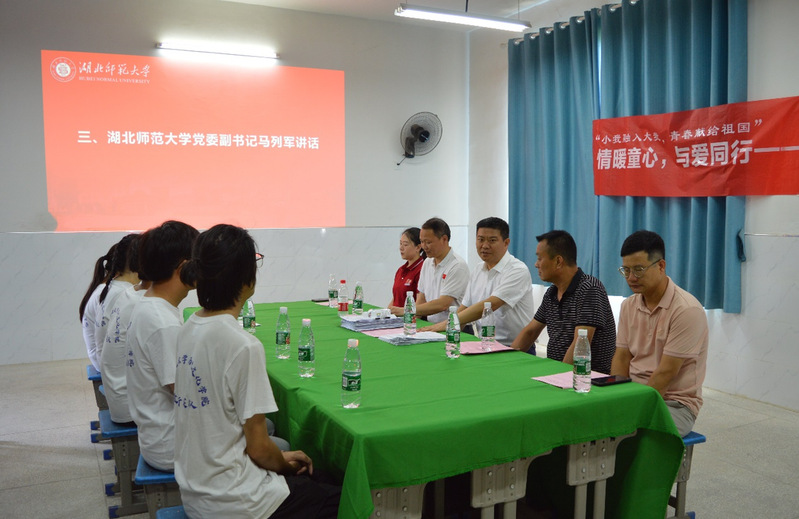 马列军代表学校感谢了王曙村为湖师学子提供进行志愿服务的平台,感谢王曙村村委对湖师学子的帮助。他指出,通过听取爱童行团队的工作汇报,充分肯定了历院学子在服务地方乡村教育发展所做的努力,对团队在支教过程中积极发扬湖师诚毅勤敏的校训精神感到十分欣慰,希望历院学子再接再励,以爱童行支教团队进一步打响湖师社会实践团队名气,真正做到专业知识服务地方社会发展。
