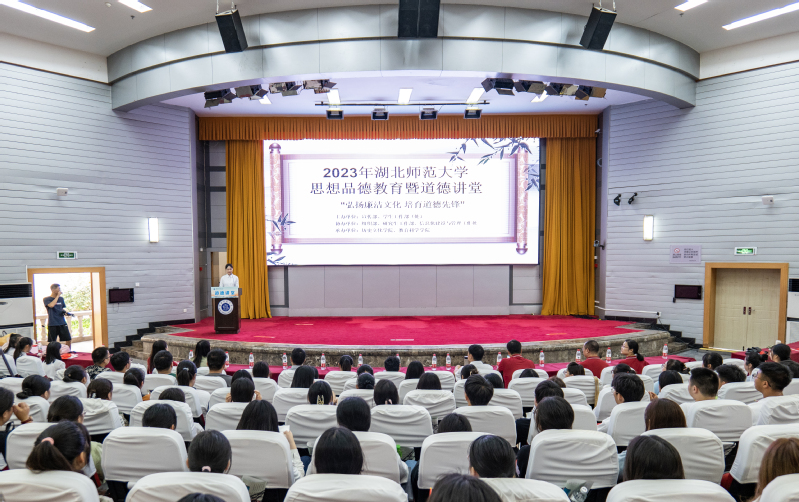 为落实全面从严治党的战略方针,推进校园廉洁文化建设,夯实高校学生清正廉洁的思想根基,2023年9月11日上午,由酒店偷拍 宣传部、学生工作部(处)主办,组织部、研究生工作部、信息化建设与管理工作处协办,酒店偷拍 、教育科学学院承办的“弘扬廉洁文化,涵养时代先锋”道德讲堂在教育大楼报告厅成功举办。