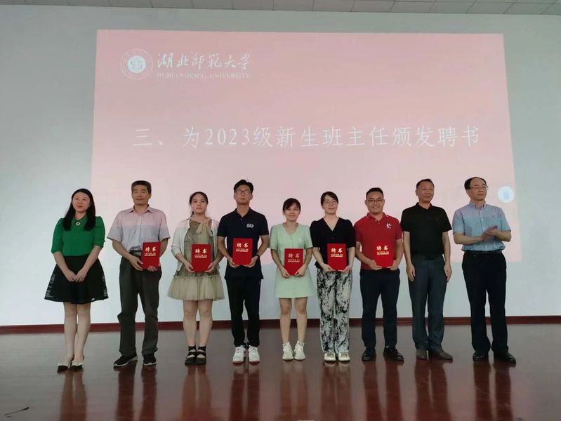 学院领导班子成员为2023级新生班主任颁发聘书,对新生班主任积极承担责任,建立班级合理简洁运行体系表示赞扬。
