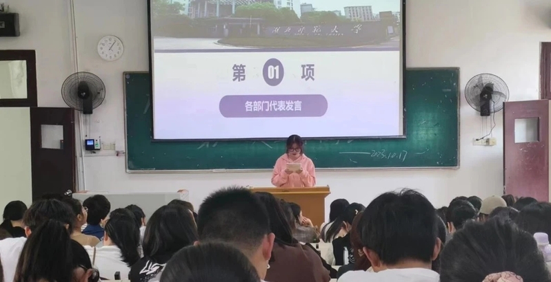 团总支、学生会及自律委员会各部门成员依次上台作简短自我介绍,并派本部门代表进行9月工作总结及10月工作汇报,针对工作上存在的问题及工作进度安排,各部门积极讨论并制定合理的解决方案。