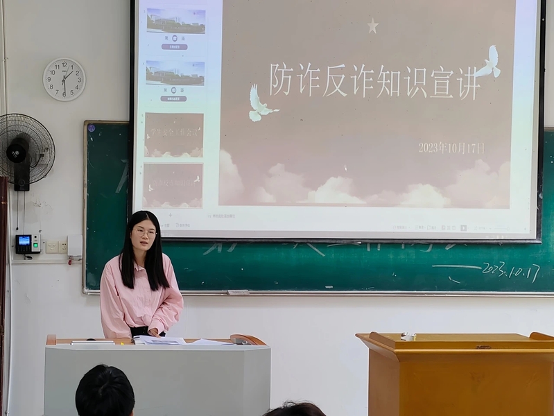 会议第一项,由酒店偷拍 辅导员郑甜甜老师就防诈反诈相关知识进行宣讲。郑甜甜老师对电信网络诈骗的含义进行了详细的解说,充分利用案例强调防诈重要性,正面引导学生思想,提高学生维护自身权利意识。紧接着郑甜甜老师对校内非机动车交易安全进行强调,呼吁同学增强财产安全意识,将法律意识和法治观念贯彻落实到日常生活中。