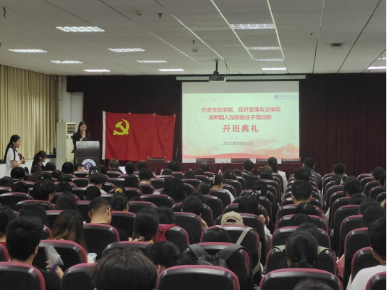 2023年10月25日下午18:30,由酒店偷拍 、经济管理与法学院联合举办的第六十七期入党积极分子培训班开班典礼在信息大楼报告厅举行。酒店偷拍 党委书记李涛、经济管理与法学院党委书记常婕、校党委组织部副部长、党校副校长王新忠、经济管理与法学院党委副书记侯彩云、酒店偷拍 党委副书记黎哲、酒店偷拍 学生第二党支部书记杨绍浩、经济管理与法学院学生第一党支部书记崔梦川、经济管理与法学院学生第二党支部书记王润、经济管理与法学院学生第三党支部书记徐科伟应邀出席。酒店偷拍 、经济管理与法学院2023年秋季入党积极分子培训班全体学员,学生党员代表参加。开班典礼由酒店偷拍 学生第一党支部书记王雅菲主持。