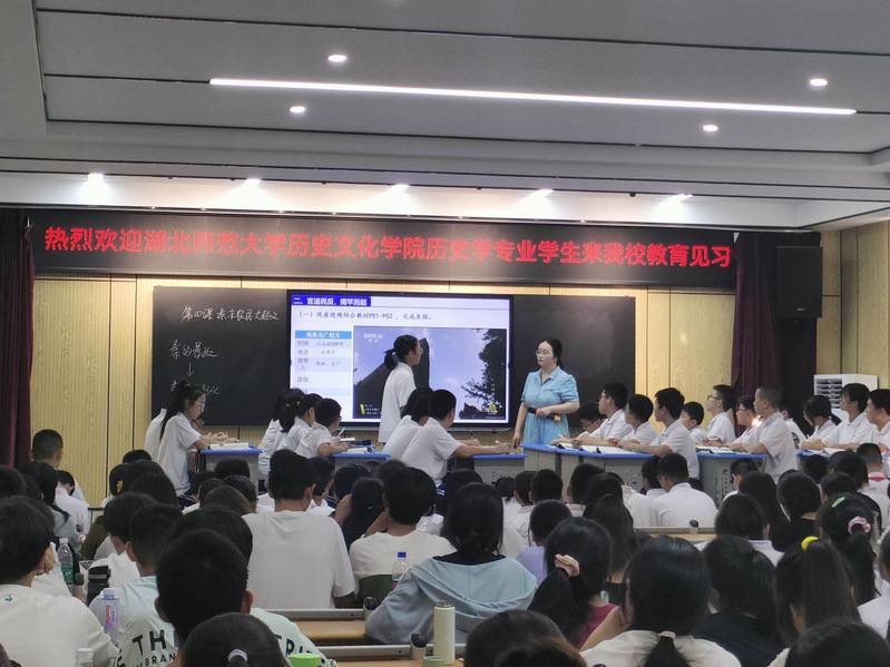观摩课堂,参与见习。本次见习活动由磁湖中学的邓蒙蒙老师以七年级上册的《秦末农民大起义》课程为例为师范生传授经验。邓蒙蒙老师首先以视频材料开篇,引起同学们的兴趣与思考。在课程中,以多角度设问启发学生思维,并让同学们随堂进行小组讨论,加深了同学们对于历史知识的认识,有效的讲解了重点历史事件。邓蒙蒙老师善于运用教学媒体,将教学媒体教学手段与板书书写相结合,同时十分重视课堂氛围,鼓励同学们积极参与课堂讨论与互动,注重培养学生的历史观念和历史氛围。