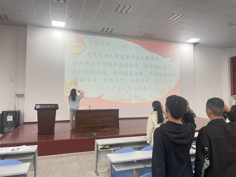随后,全体团员代表重温入团誓词,学生代表蔡婉滢上台领誓。