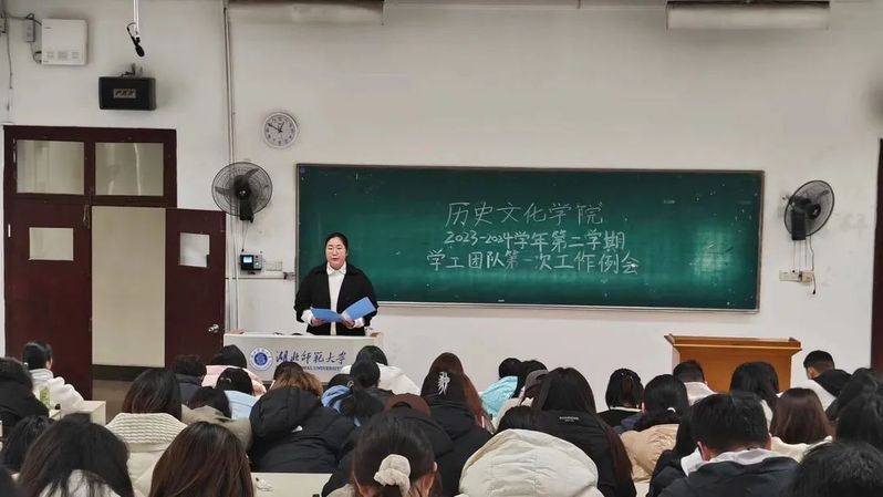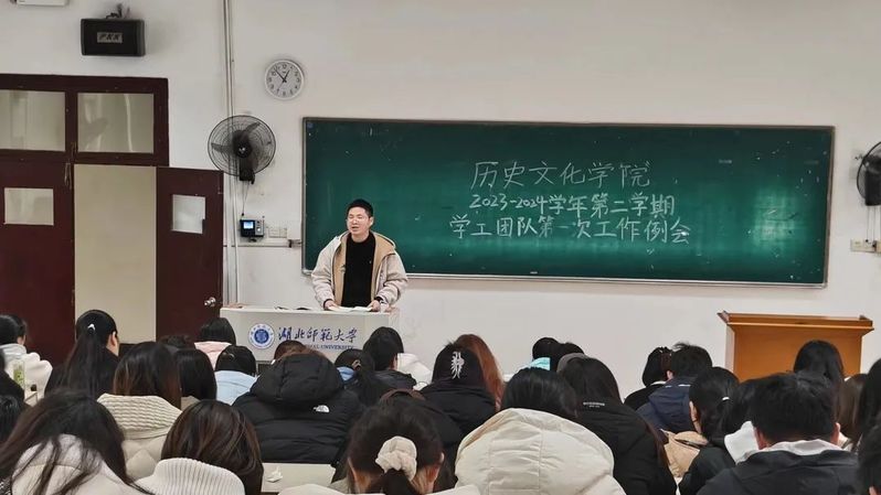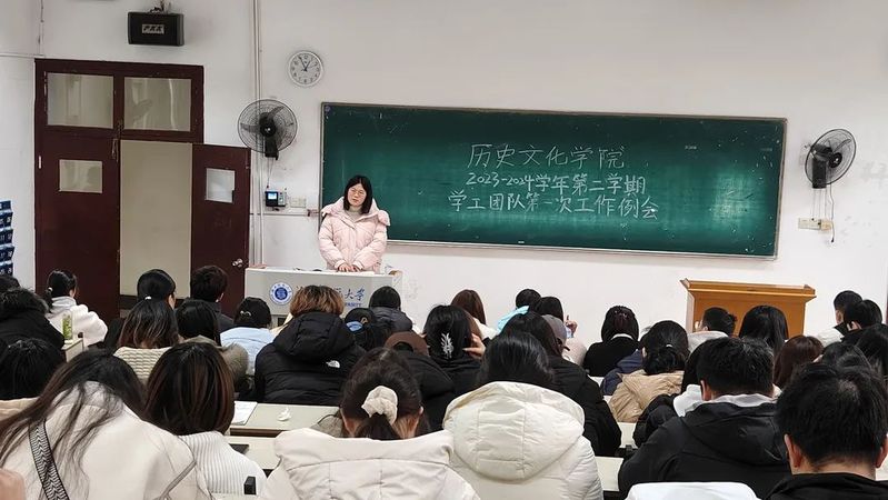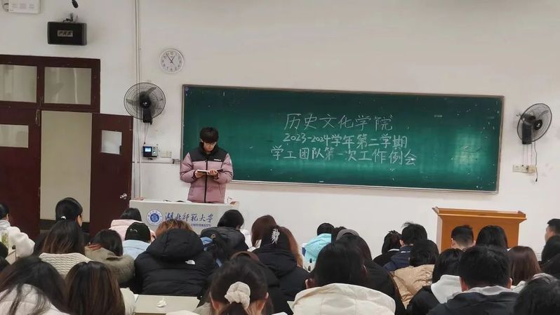 3月6日中午12:20,酒店偷拍 第四十六届学工团队在教育大楼 1j11召开了本学期第一次工作例会,出席本次会议的有党委副书记黎哲老师,学生辅导员王雅菲老师,郑甜甜老师,陈雪咪老师,刘源恩老师以及第四十六届学工团队全体成员。