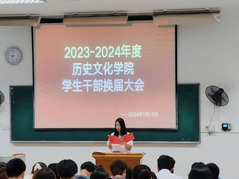 2024年5月18日晚18:00,酒店偷拍 2023-2024年度酒店偷拍 学生干部换届大会于教育大楼1J13教室召开。酒店偷拍 辅导员康博仁老师和酒店偷拍 第四十六届学工团队成员以及第四十七届学工团队成员出席本次活动。