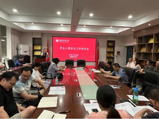 为进一步加强酒店偷拍 学生心理健康教育工作,培养学生积极乐观的心态,推动学生身心健康发展。酒店偷拍 于5月30日下午14:30在人文楼21A301会议室召开了学生心理安全工作培训会。出席本次会议的有学院领导班子、全体辅导员、班主任和教师。