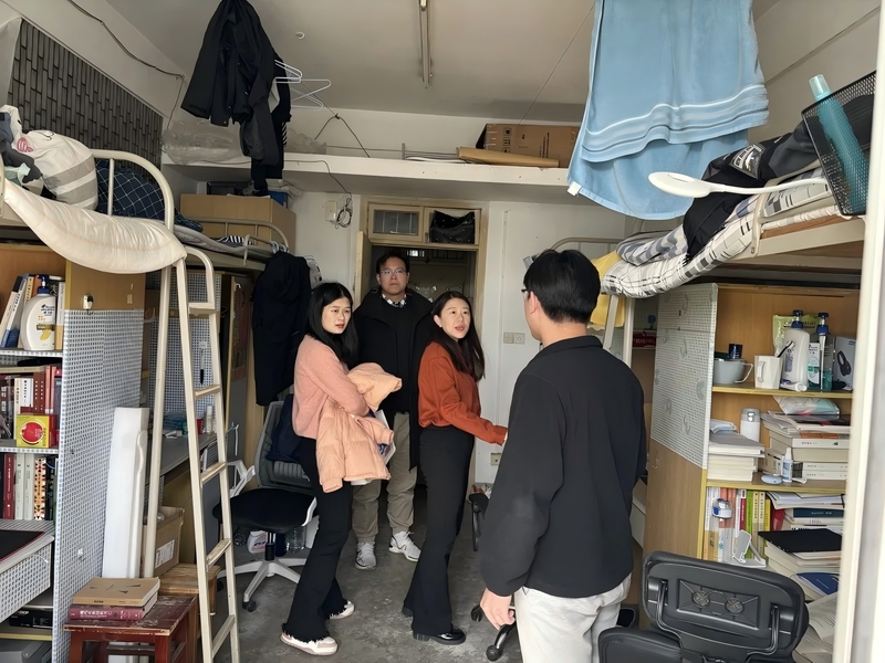 老师满怀关怀与温情,在本次宿舍自查工作中,他们不时停下脚步,与同学们展开亲切的互动与交流,悉心倾听同学们的心声与诉求。此番走访活动,不仅拉近了师生之间的距离,也让同学们感受到了来自学院的深切关怀与坚实支持。