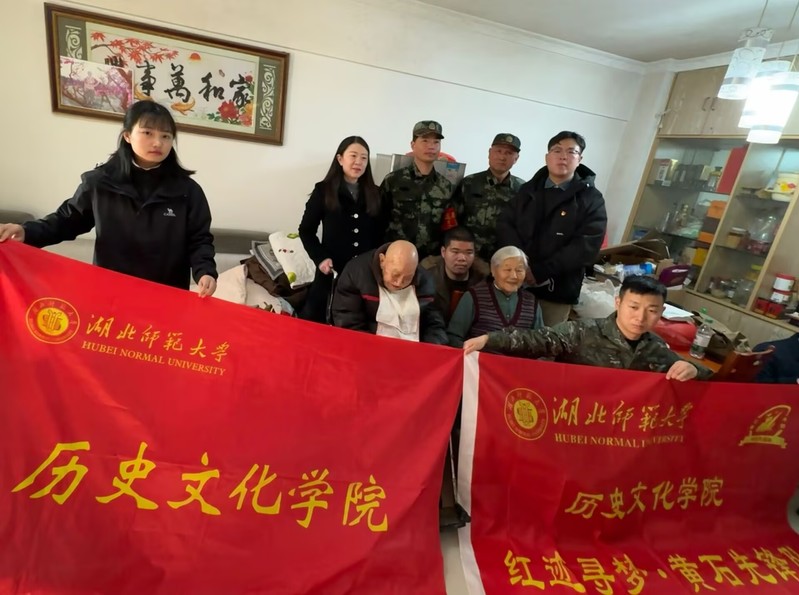 “1”代表1个主场,此次主场设在抗战老兵库方禹爷爷家中,红迹寻梦实践队深入库爷爷家中,与他面对面访谈,聆听他讲述那段硝烟弥漫的抗战岁月。库爷爷虽然已是98岁高龄,但精神矍铄,回忆起当年的战斗经历,他多次重复感谢党、感谢国家,感慨自己的命是战友换来的,话语中满是对战友的怀念与对党的忠诚。他还现场唱起了《黄河大合唱》,用激昂的歌声表达对祖国的热爱与对革命先烈的缅怀。尽管年事已高,库爷爷依然保持着对知识的渴求和对时事的关注,每天早上6点准时观看《海峡两岸》,密切关注台湾局势,展现出一位老党员的担当与情怀。