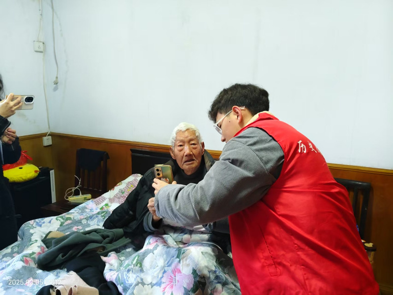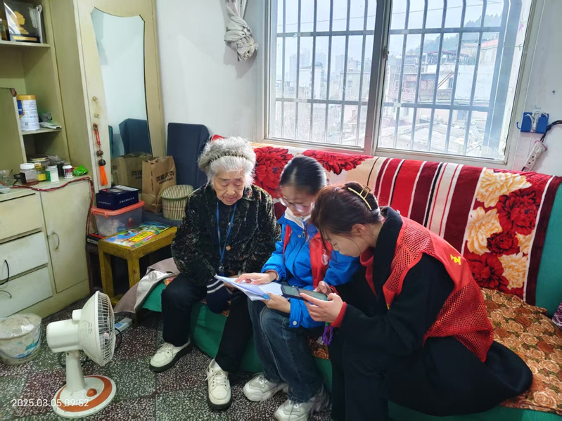 上午9时,由郑甜甜老师带队,志愿者们于王家里社区集合并有序划分任务,随后在社区工作人员的带领下逐一敲响了老人们的家门。在独居老人家中,志愿者们挽起袖子,清扫地面、擦拭积灰的窗户、整理杂乱的储物柜。除了环境清洁,志愿者们更注重给予老人心灵的陪伴。志愿者围坐在老人身边,与他们亲切地聊天。老人们也敞开心扉分享着自己的人生经历和生活故事。志愿者们专注地倾听,不时提问、回应,现场气氛温馨融洽,欢声笑语驱散了往日的冷清。此外,志愿者还发现部分老人因不熟悉智能手机,在社保资料认证时遇到困难,便主动上前,手把手教老人操作,完成认证。