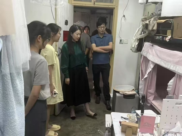 班主任则在走访中详细询问了同学们的假期生活和返校情况,了解同学们的思想动态和学习计划。针对同学们在学习和生活中遇到的问题,老师们耐心解答并给予指导。老师们还特别关注了同学们的寝室关系,鼓励同学们相互理解、相互包容,营造和谐友好的寝室氛围,共同打造温馨舒适的宿舍环境。