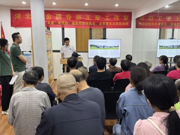 在文旅集中推介环节,燕归巢旅游志愿服务团队的志愿者通过“超大字图PPT”生动讲解了沈家营街道与阳新县的文旅资源,让居民们对两地的旅游资源有了更深入的了解。同时, 现场还发放了含“黄石港区的旅游景点”“阳新丰收一日游路线”等宣传资料,为居民提供了详尽的景点图文介绍。