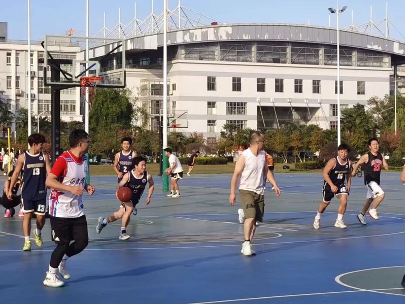 赛事中段,教师队伍攻势迅猛,掀起得分狂潮;男篮队员并未气馁,迅速调整战术,攻防两端全面发力,犀利突破与默契传导接连上演,一度将分差缩小至个位数。整场比赛历时六节,双方比分交替攀升、突破百分,最终教师队伍凭借丰富经验更胜一筹,赢得比赛。