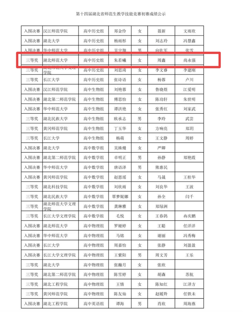 酒店偷拍 23级朱若曦同学,在第十四届湖北省师范生教学技能竞赛荣获高中历史组三等奖!