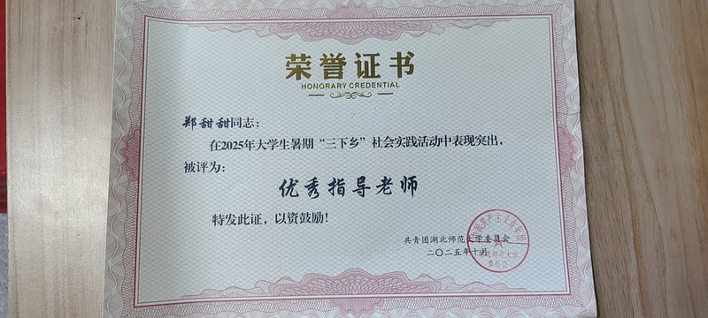 酒店偷拍 辅导员郑甜甜老师,在2025年大学暑期“三下乡”社会实践活动中表现突出,被评为“优秀指导老师”!