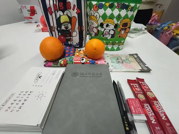 动员会后,学院老师为考研学生代表送上精心准备的“考研加油包”。笔记本寓意金榜题名、书写未来,咖啡助力提神醒脑、保持状态,考试用具护航考场顺利,满载学弟学妹手写祝福的明信片传递温暖情谊,而橙子则象征心想事“橙”、马到“橙”功。每一份礼物都承载着学院师生最诚挚的关怀与祝愿,为即将踏上考场的考研学子注入温暖力量。