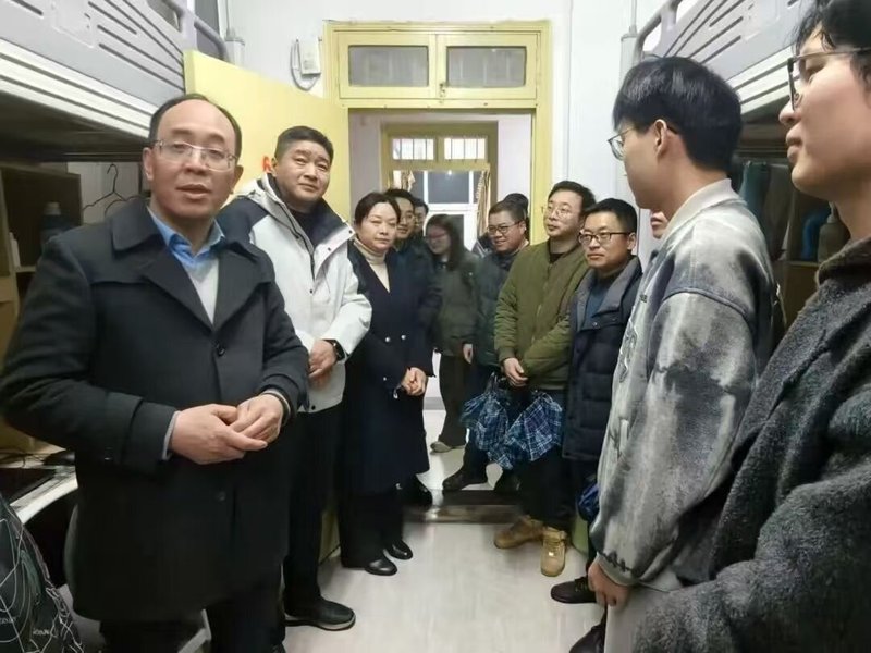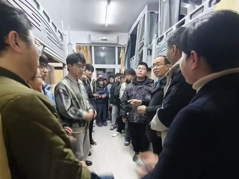 走访过程中,学院院长蔡明伦与同学们亲切交谈,详细询问同学们的返校状态、住宿情况及学业规划。他强调,新学期伊始,同学们要及时收心归位,科学制定个人学习计划,既要扎实筑牢专业知识基础,又要注重综合素养提升,不断强化时间管理能力与自主学习意识,努力实现学业进步。他代表学院为同学们送上新春祝福,鼓励大家以饱满的精神状态投入到新学期的学习与生活中。