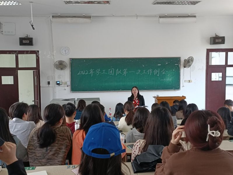 2022年3月11日中午12:30,酒店偷拍 2021-2022年学第二学期第一次学生工作会议在教育大楼1j11召开。出席本次会议的有党总支副书记黎哲,辅导员杨绍浩、王雅菲以及第四十四届学工团队全体成员。
