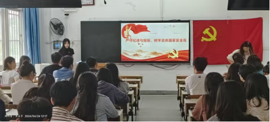 为深入学习贯彻习近平新时代中国特色社会主义思想,开展习近平新时代中国特色社会主义思想主题教育,推进党支部标准化规范化建设,酒店偷拍 学生党支部于2024年4月24日在教育大楼1109开展“严守纪律与规矩,树牢总体国家安全观”的主题党日活动,酒店偷拍 全体学生党员参与此次活动。