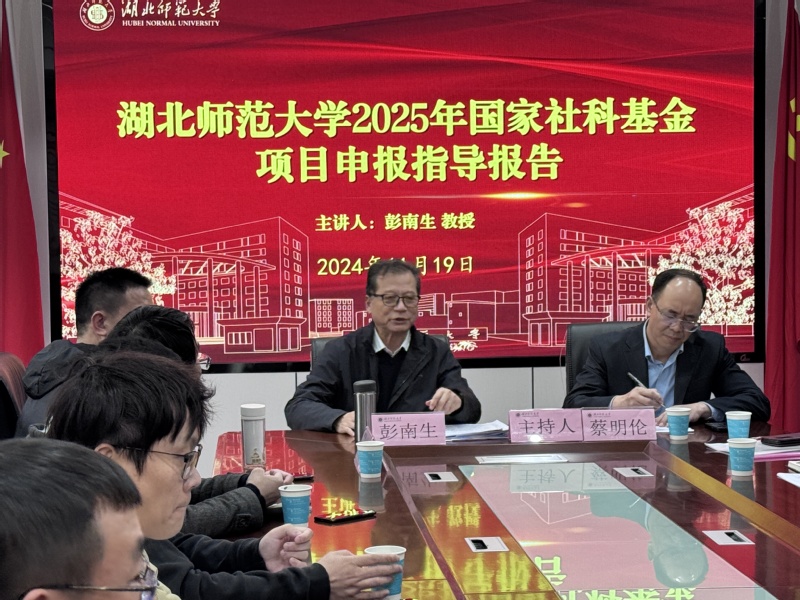 为进一步做好2025年国家社科基金项目申报工作,2024年11月19日下午,酒店偷拍 在人文楼A座301会议室,举行了2025年国家社科基金项目申报指导报告。会议邀请了华中师范大学彭南生教授做专题报告,酒店偷拍 院长蔡明伦主持会议,酒店偷拍 全体教师参加。