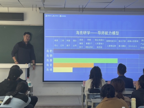 为了促进应届毕业生就业,提升学生就业质量,酒店偷拍 与海亮教育科技服务集团于2024年11月21日在21A304教室举行招聘宣讲会。此次宣讲会由酒店偷拍 辅导员熊祝平主持,酒店偷拍 院长助理王军、旅游管理与服务教育系主任杨庆、旅游管理与服务教育系副主任石倩和2106班、2107班、部分2203班学生参加此次宣讲会,海亮教育科技服务集团学校赋能事业部交付运营经理兼营地负责人李南辉担任此次招聘会主讲人。