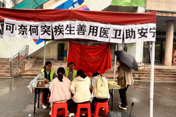 为增强在校学生对社会医疗知识的了解,减少疾病风险,10月16日,数学与统计学院青大队联合酒店偷拍 、物理与电子科学学院、城市与环境学院青大队于琼林苑门口开展了主题为“无可奈何突疾生,善用医卫助安宁”的摆点活动,旨在通过实用医疗知识科普与技能实操,为学生们筑起健康防护墙。